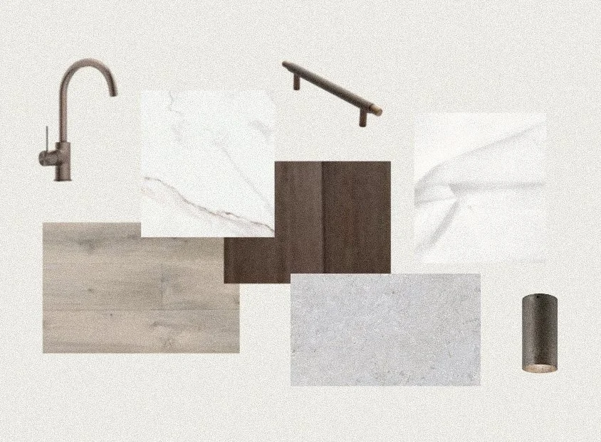 A simple colour palette and materials board was selected for this home. We wanted the residence to pay homage to the beachy suburb it is nestled in.